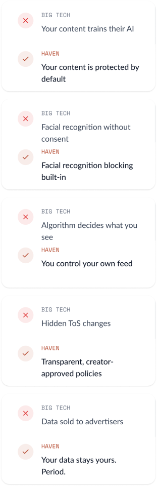 © 2026 Haven. All rights reserved. Built for creators, by creators.